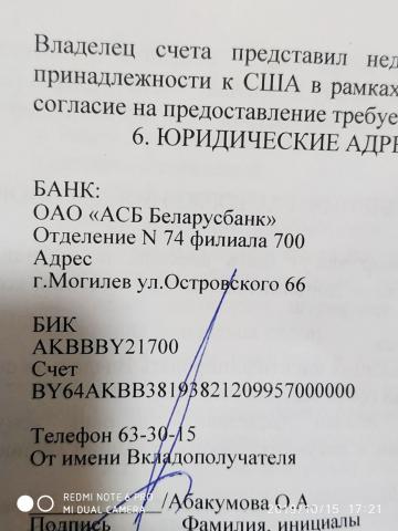 БИК AKBBBY21700 счет BY64 AKBB 3819 3821 2099 5700 0000