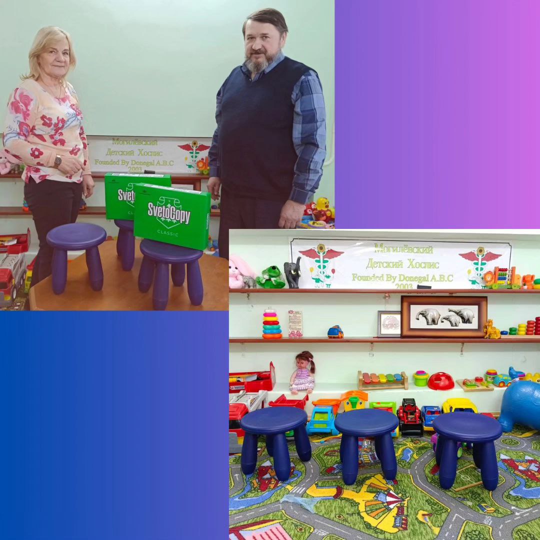 Настоятель храма Успения Пресвятой Богородицы аг. Сухари. Иерей Игорь Ковалев привез канцтовары и стулья для нужд хосписа.